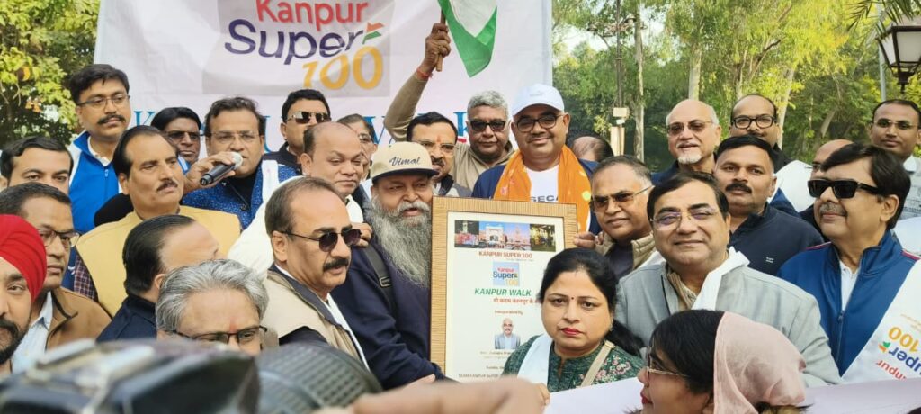 कानपुर को एक नए स्वरूप में स्थापित करने और “बेहतर कानपुर” के विज़न को साकार करने हेतु कानपुर सुपर 100 की ओर से रविवार को “कानपुर वॉक” का भव्य आयोजन किया गया। इस प्रेरणादायी पहल का शुभारंभ जिलाधिकारी कानपुर नगर जितेंद्र प्रताप सिंह एवं बीजेपी कानपुर-बुंदेलखंड क्षेत्रीय अध्यक्ष प्रकाश पाल ने किया। सुबह नाना राव पार्क से शुरू हुई यह वॉक ग्रीन पार्क तक निकाली गई, जिसमें जिला प्रशासन, सामाजिक संगठनों, चिकित्सा जगत, रक्षा सेवाओं, व्यापारिक समुदाय और मीडिया के सैकड़ों वरिष्ठ प्रतिनिधियों ने सहभागिता की।
